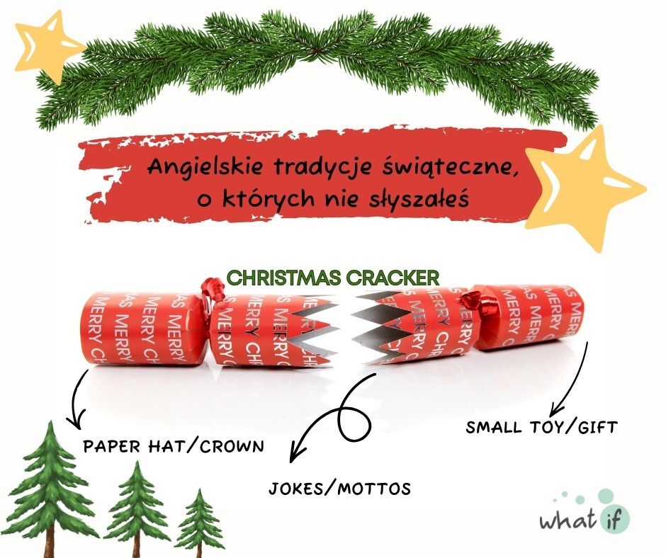 „Christmas crackers” to kolorowe tubki, które dwie osoby rozrywają z charakterystycznym trzaskiem. W środku najczęściej znajduje się papierowa korona, mały upominek i... zabawny dowcip po angielsku. To właśnie dzięki nim świąteczny obiad w Anglii nabiera wyjątkowego charakteru – śmiech, żarty i kolorowe korony na głowach gości to norma.