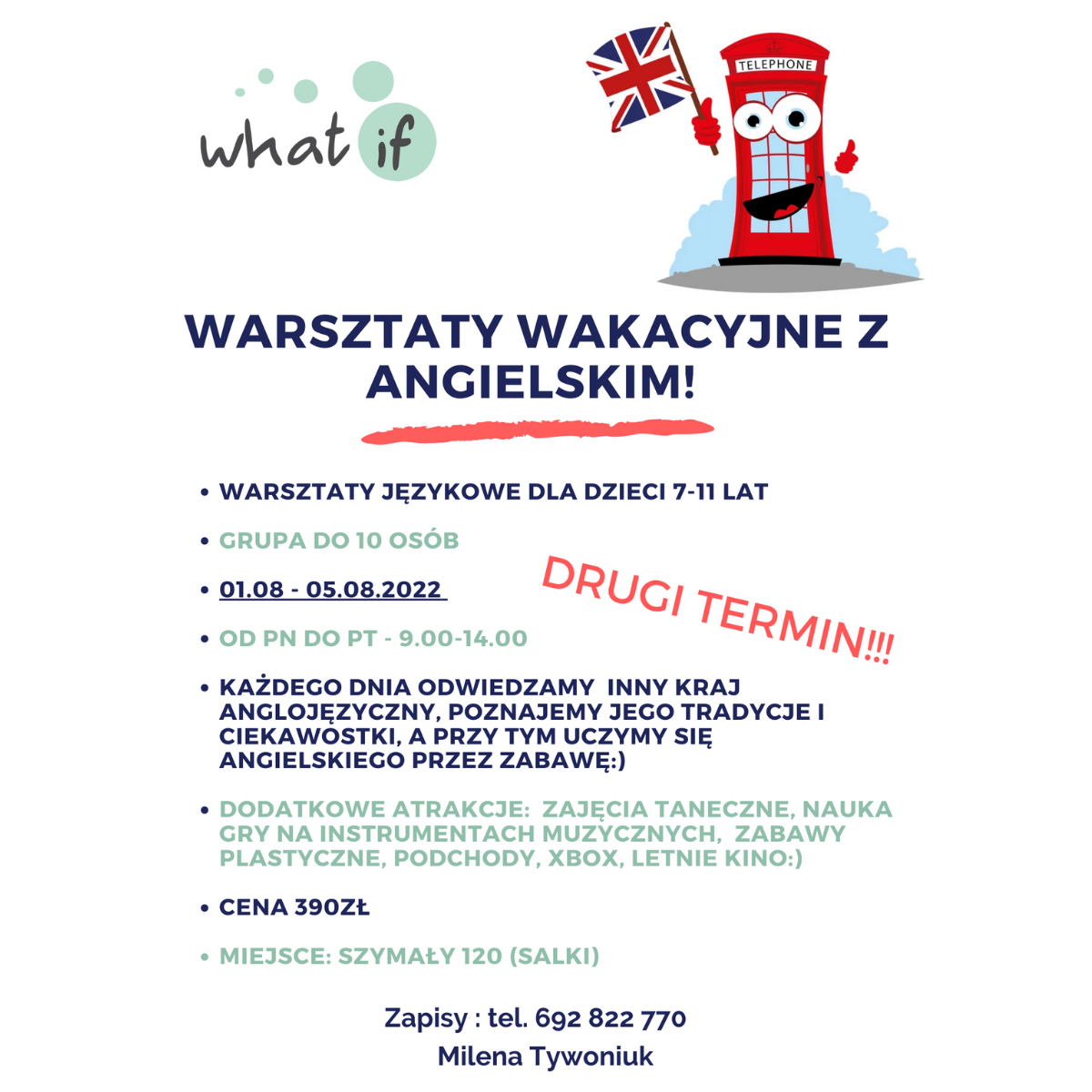 Zapraszamy na warsztaty językowe od 01.08-05.08.2022! Mamy jeszcze 5 wolnych miejsc:)